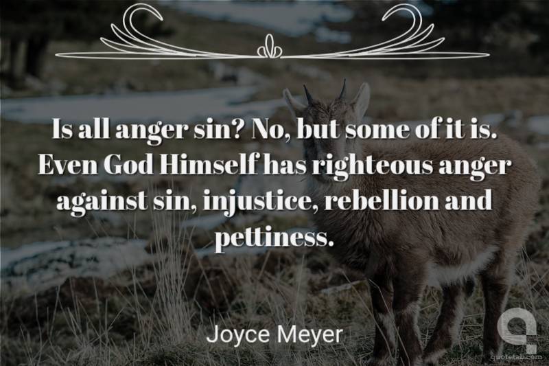 Is all anger sin? No, but some of it is. Even God Himself has righteous anger against sin, injustice, rebellion and pettiness.