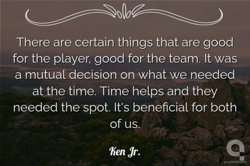 There are certain things that are good for the player, good for the team. It was a mutual decision on what we needed at the time. Time helps and they needed the spot. It's beneficial for both of us.