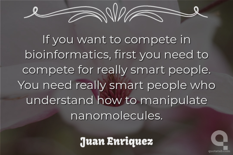 If you want to compete in bioinformatics, first you need to compete for really smart people. You need really smart people who understand how to manipulate nanomolecules.