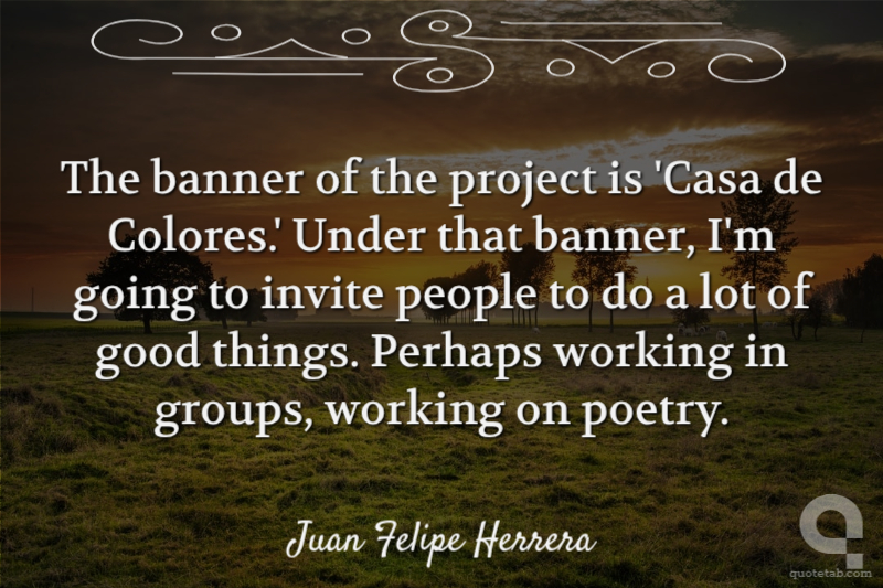 The banner of the project is 'Casa de Colores.' Under that banner, I'm going to invite people to do a lot of good things. Perhaps working in groups, working on poetry.