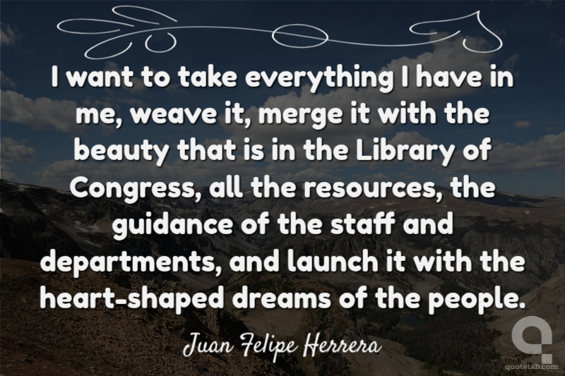 I want to take everything I have in me, weave it, merge it with the beauty that is in the Library of Congress, all the resources, the guidance of the staff and departments, and launch it with the heart-shaped dreams of the people.