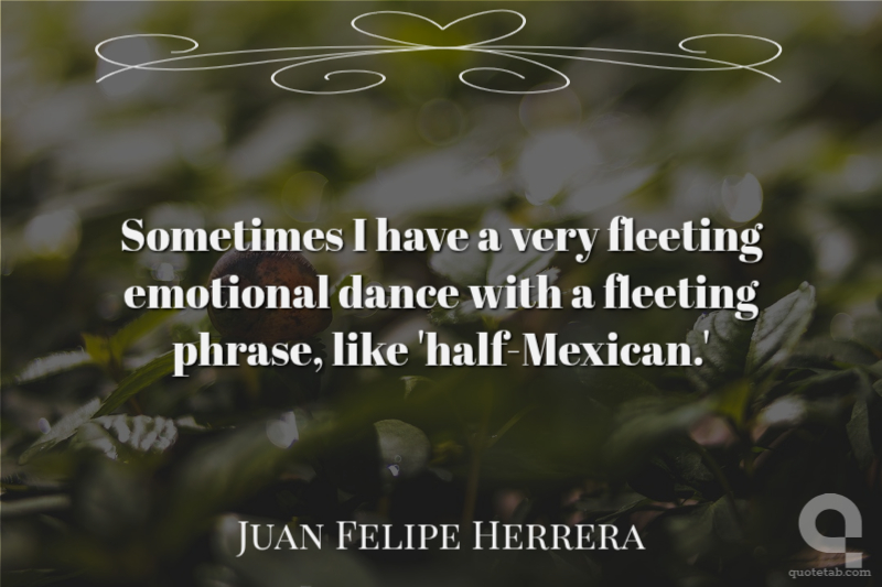 Sometimes I have a very fleeting emotional dance with a fleeting phrase, like 'half-Mexican.'