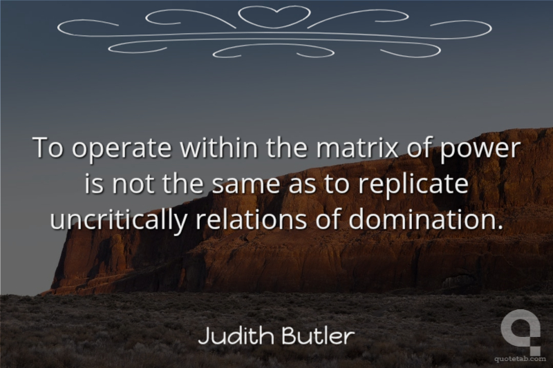To operate within the matrix of power is not the same as to replicate uncritically relations of domination.