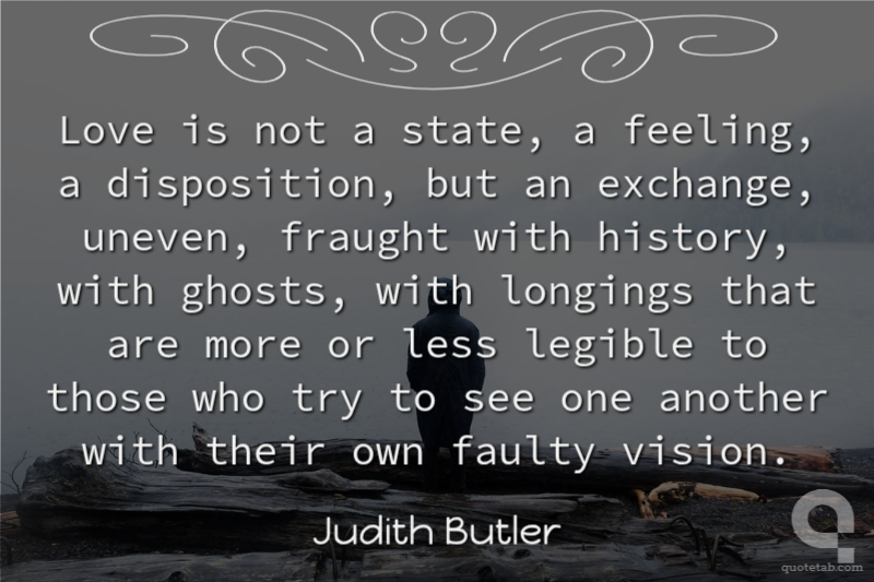 Love is not a state, a feeling, a disposition, but an exchange, uneven, fraught with history, with ghosts, with longings that are more or less legible to those who try to see one another with their own faulty vision.