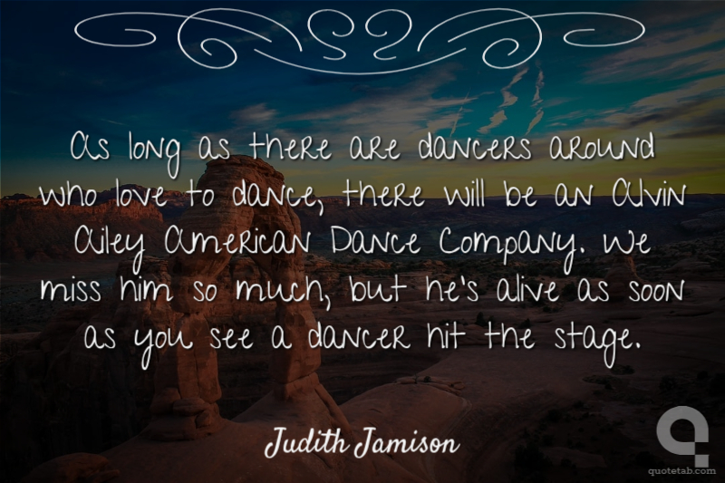 As long as there are dancers around who love to dance, there will be an Alvin Ailey American Dance Company. We miss him so much, but he's alive as soon as you see a dancer hit the stage.