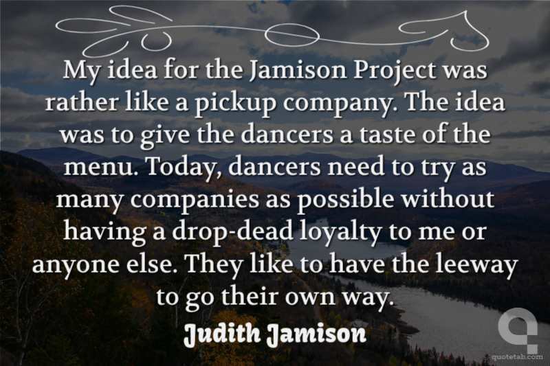 My idea for the Jamison Project was rather like a pickup company. The idea was to give the dancers a taste of the menu. Today, dancers need to try as many companies as possible without having a drop-dead loyalty to me or anyone else. They like to have the leeway to go their own way.