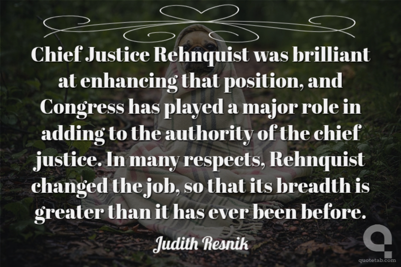 Chief Justice (William) Rehnquist was brilliant at enhancing that position, and Congress has played a major role in adding to the authority of the chief justice. In many respects, Rehnquist changed the job, so that its breadth is greater than it has ever been before.