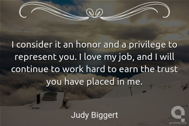 I consider it an honor and a privilege to represent you. I love my job, and I will continue to work hard to earn the trust you have placed in me.