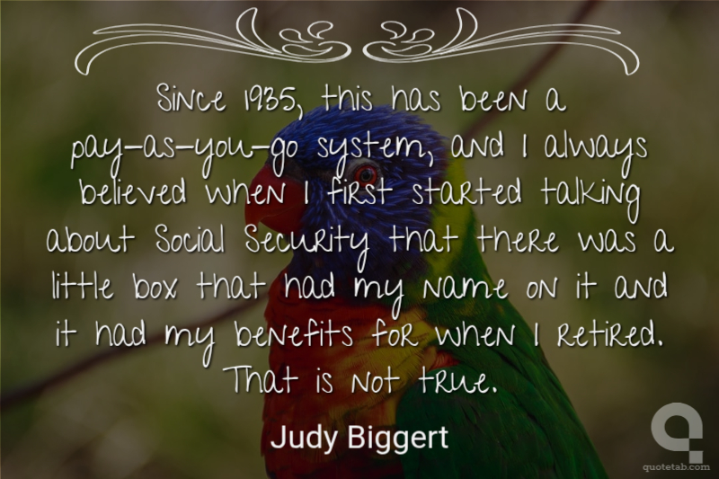 Since 1935, this has been a pay-as-you-go system, and I always believed when I first started talking about Social Security that there was a little box that had my name on it and it had my benefits for when I retired. That is not true.