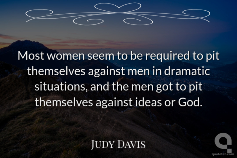 Most women seem to be required to pit themselves against men in dramatic situations, and the men got to pit themselves against ideas or God.