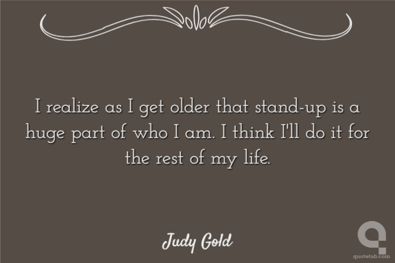 I realize as I get older that stand-up is a huge part of who I am. I think I'll do it for the rest of my life.