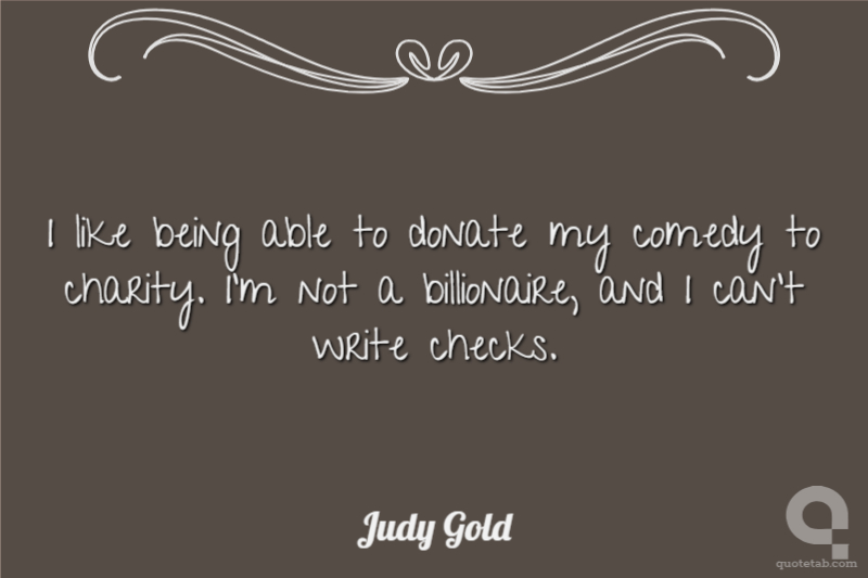 I like being able to donate my comedy to charity. I'm not a billionaire, and I can't write checks.
