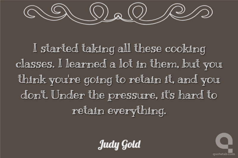 I started taking all these cooking classes. I learned a lot in them, but you think you're going to retain it, and you don't. Under the pressure, it's hard to retain everything.