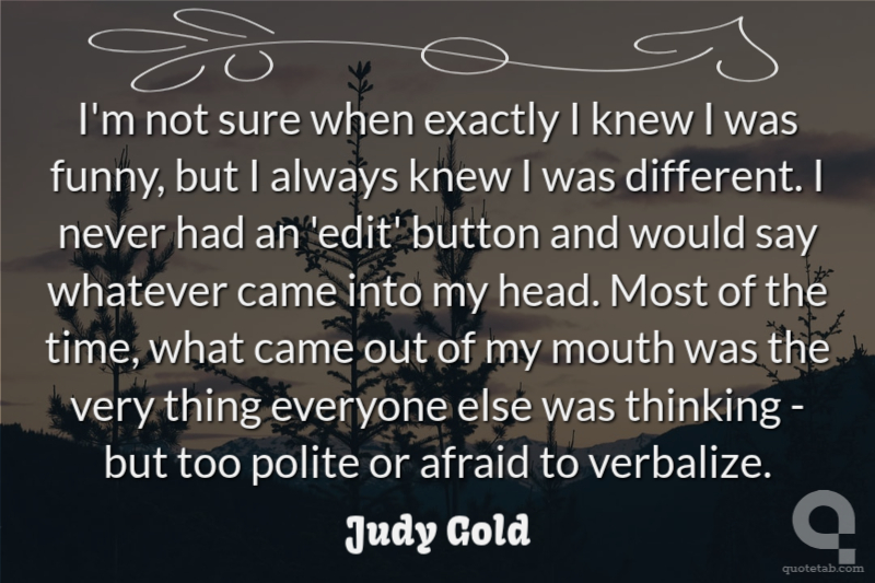 I'm not sure when exactly I knew I was funny, but I always knew I was different. I never had an 'edit' button and would say whatever came into my head. Most of the time, what came out of my mouth was the very thing everyone else was thinking - but too polite or afraid to verbalize.