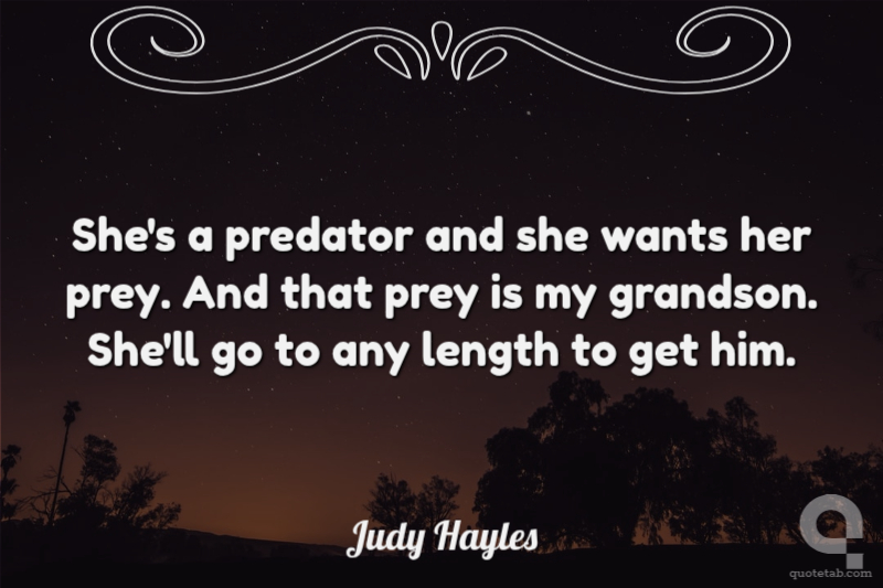 She's a predator and she wants her prey. And that prey is my grandson. She'll go to any length to get him.