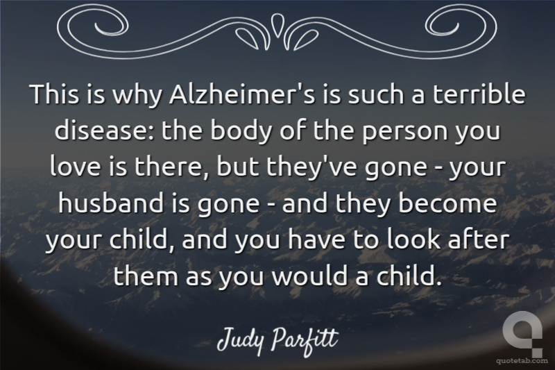This is why Alzheimer's is such a terrible disease: the body of the person you love is there, but they've gone - your husband is gone - and they become your child, and you have to look after them as you would a child.