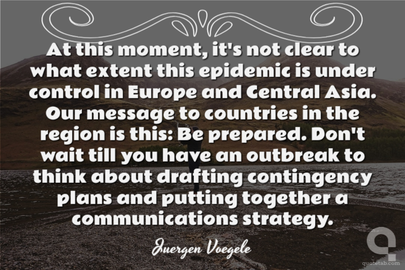 At this moment, it's not clear to what extent this epidemic is under control in Europe and Central Asia. Our message to countries in the region is this: Be prepared. Don't wait till you have an outbreak to think about drafting contingency plans and putting together a communications strategy.