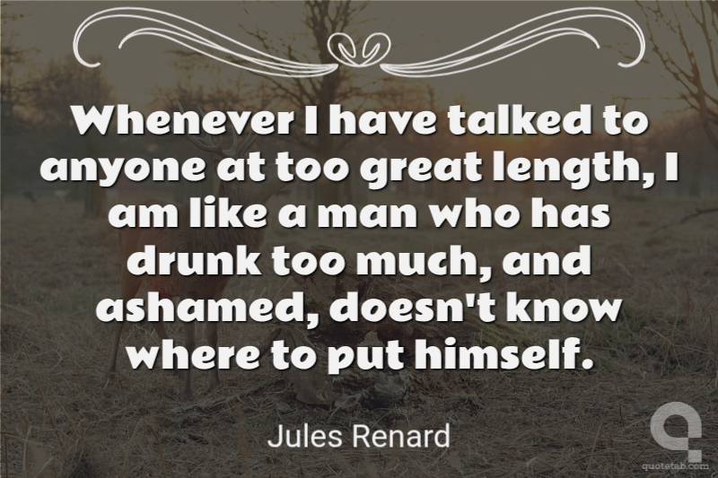 Whenever I have talked to anyone at too great length, I am like a man who has drunk too much, and ashamed, doesn't know where to put himself.