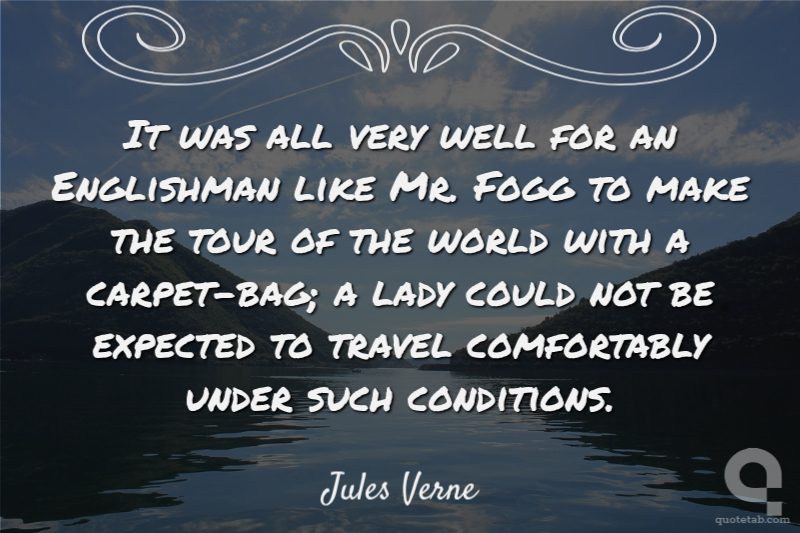 It was all very well for an Englishman like Mr. Fogg to make the tour of the world with a carpet-bag; a lady could not be expected to travel comfortably under such conditions.