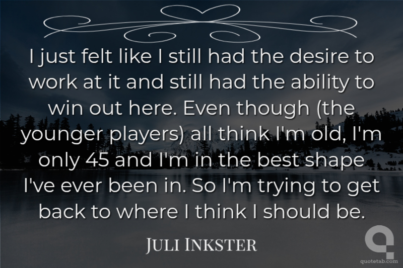 I just felt like I still had the desire to work at it and still had the ability to win out here. Even though (the younger players) all think I'm old, I'm only 45 and I'm in the best shape I've ever been in. So I'm trying to get back to where I think I should be.