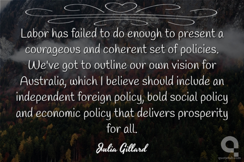 Labor has failed to do enough to present a courageous and coherent set of policies. We've got to outline our own vision for Australia, which I believe should include an independent foreign policy, bold social policy and economic policy that delivers prosperity for all.