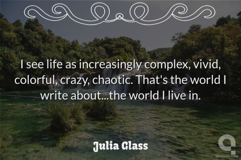 I see life as increasingly complex, vivid, colorful, crazy, chaotic. That's the world I write about...the world I live in.