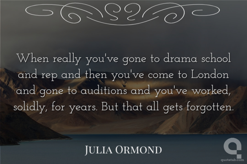 When really you've gone to drama school and rep and then you've come to London and gone to auditions and you've worked, solidly, for years. But that all gets forgotten.