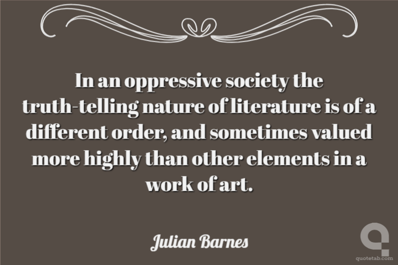In an oppressive society the truth-telling nature of literature is of a different order, and sometimes valued more highly than other elements in a work of art.