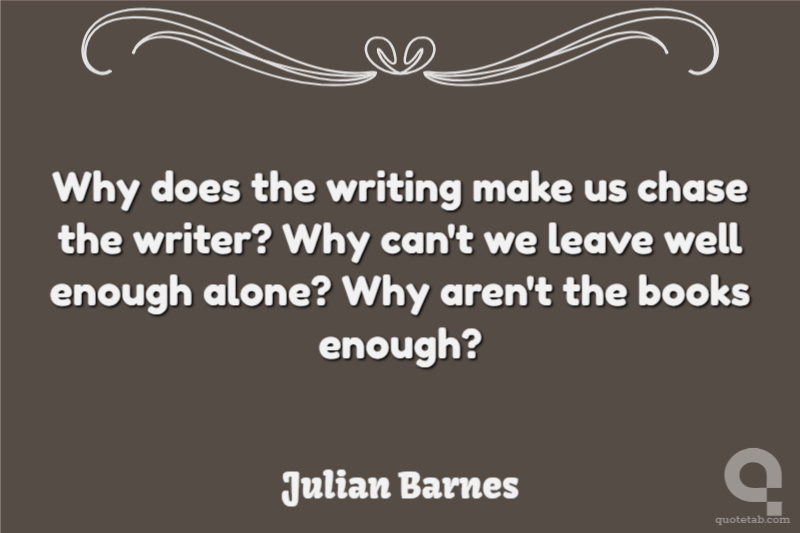 Why does the writing make us chase the writer? Why can't we leave well enough alone? Why aren't the books enough?