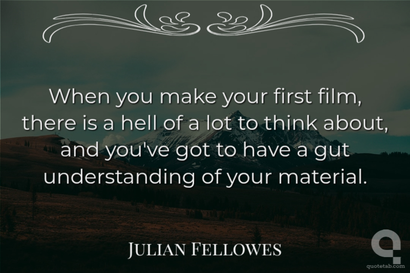 When you make your first film, there is a hell of a lot to think about, and you've got to have a gut understanding of your material.