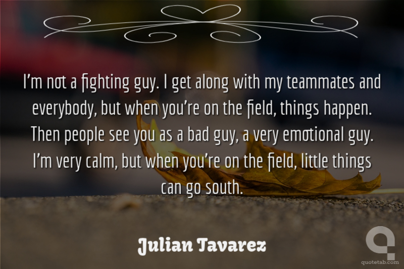 I'm not a fighting guy. I get along with my teammates and everybody, but when you're on the field, things happen. Then people see you as a bad guy, a very emotional guy. I'm very calm, but when you're on the field, little things can go south.