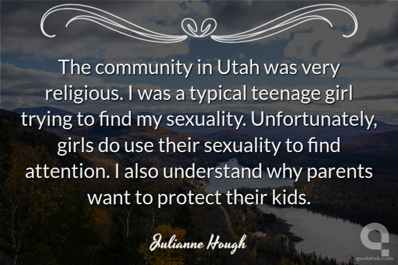 The community in Utah was very religious. I was a typical teenage girl trying to find my sexuality. Unfortunately, girls do use their sexuality to find attention. I also understand why parents want to protect their kids.