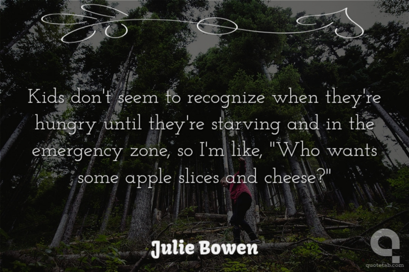 Kids don't seem to recognize when they're hungry until they're starving and in the emergency zone, so I'm like, "Who wants some apple slices and cheese?"