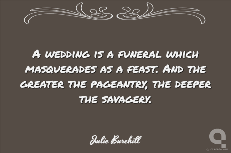 A wedding is a funeral which masquerades as a feast. And the greater the pageantry, the deeper the savagery.