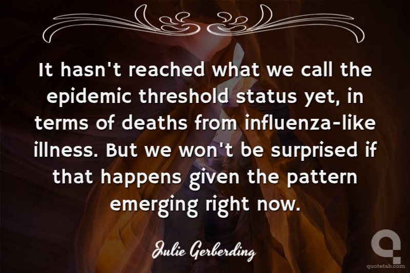 It hasn't reached what we call the epidemic threshold status yet, in terms of deaths from influenza-like illness. But we won't be surprised if that happens given the pattern emerging right now.