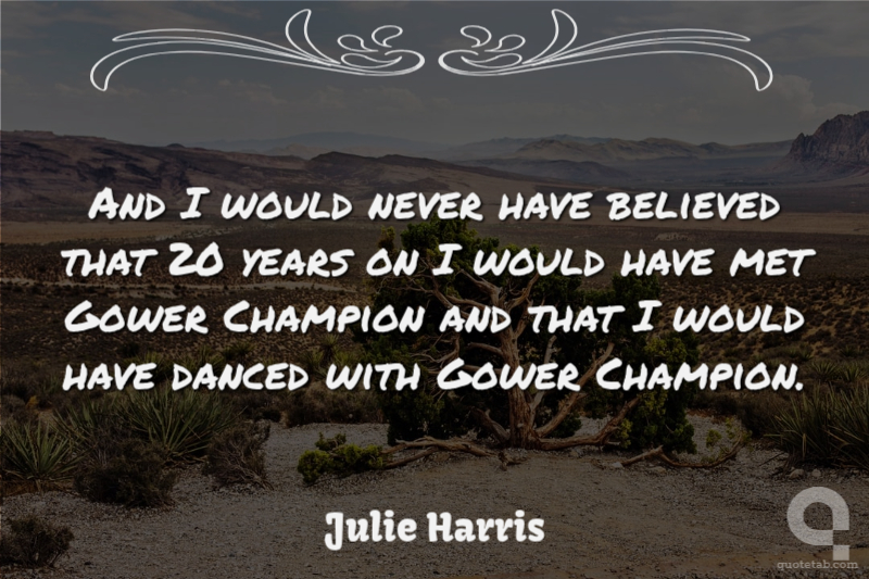 And I would never have believed that 20 years on I would have met Gower Champion and that I would have danced with Gower Champion.