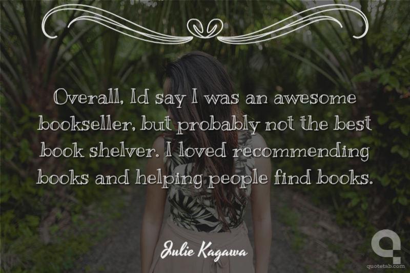 Overall, Id say I was an awesome bookseller, but probably not the best book shelver. I loved recommending books and helping people find books.