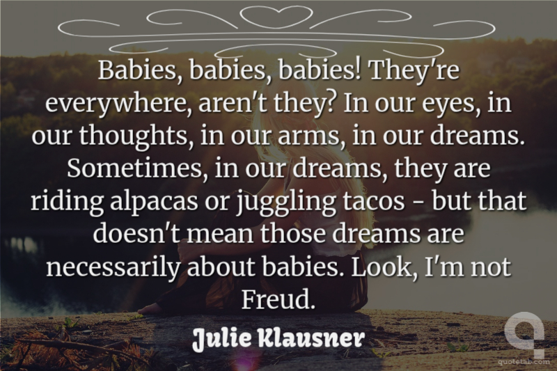 Babies, babies, babies! They're everywhere, aren't they? In our eyes, in our thoughts, in our arms, in our dreams. Sometimes, in our dreams, they are riding alpacas or juggling tacos - but that doesn't mean those dreams are necessarily about babies. Look, I'm not Freud.