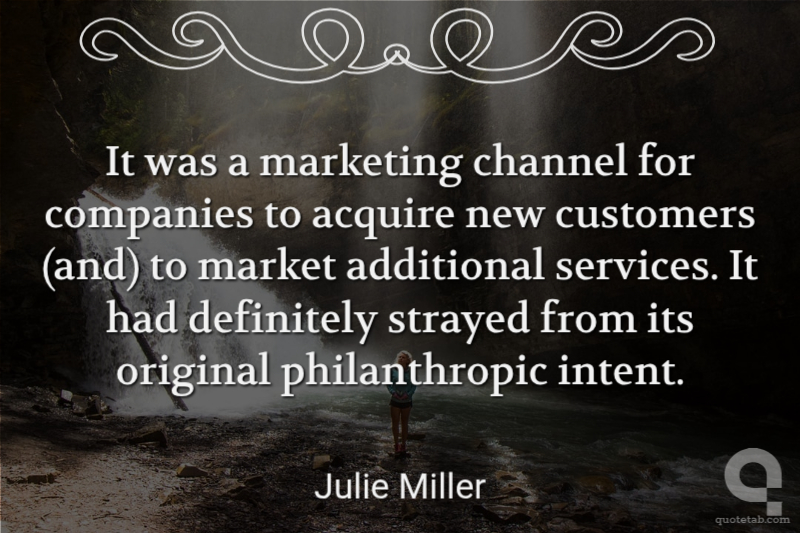 It was a marketing channel for companies to acquire new customers (and) to market additional services. It had definitely strayed from its original philanthropic intent.