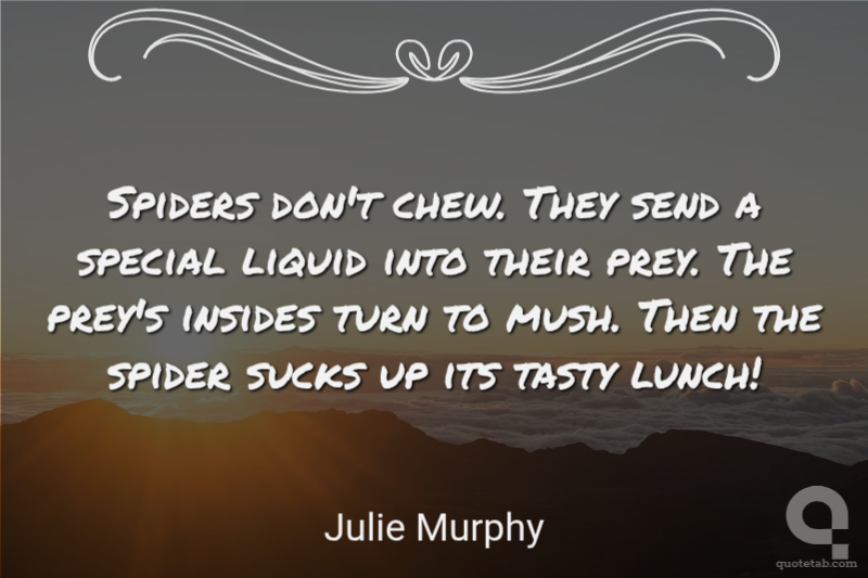 Spiders don't chew. They send a special liquid into their prey. The prey's insides turn to mush. Then the spider sucks up its tasty lunch!