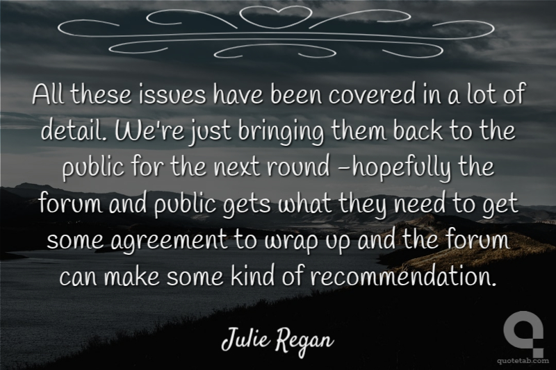 All these issues have been covered in a lot of detail. We're just bringing them back to the public for the next round -hopefully the forum and public gets what they need to get some agreement to wrap up and the forum can make some kind of recommendation.
