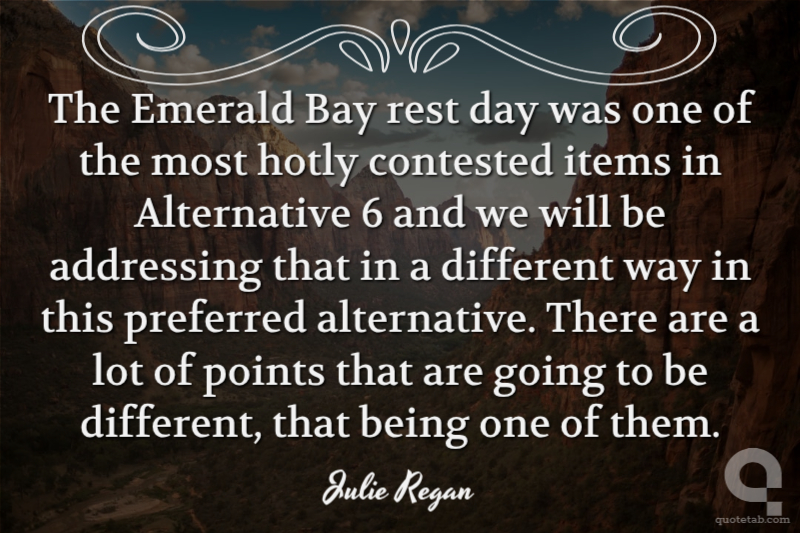 The Emerald Bay rest day was one of the most hotly contested items in Alternative 6 and we will be addressing that in a different way in this preferred alternative. There are a lot of points that are going to be different, that being one of them.