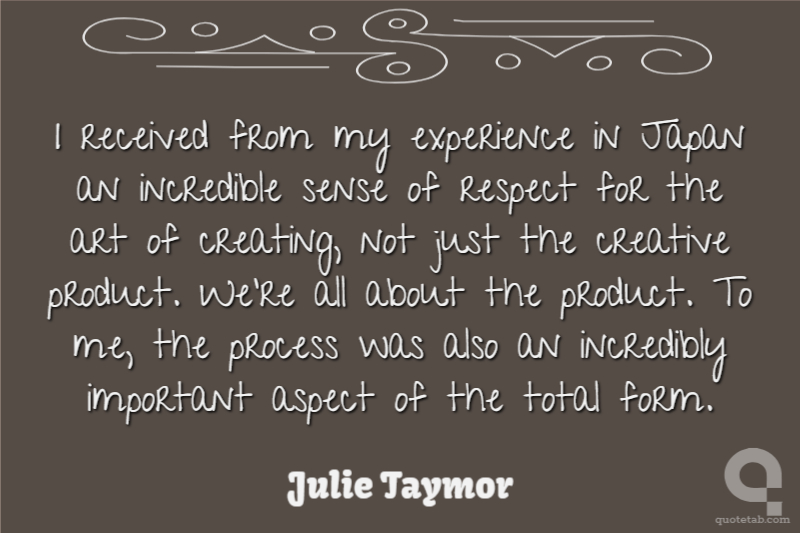 I received from my experience in Japan an incredible sense of respect for the art of creating, not just the creative product. We're all about the product. To me, the process was also an incredibly important aspect of the total form.