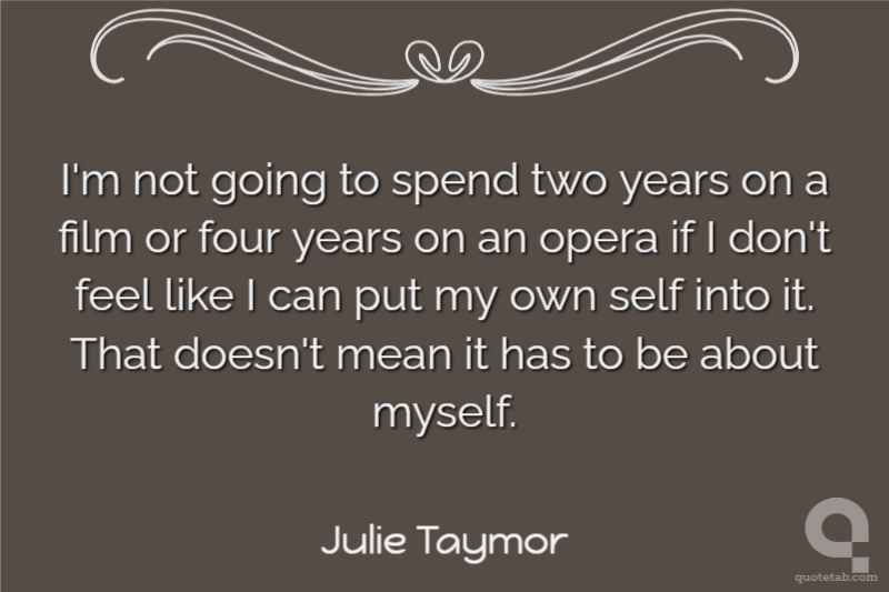 I'm not going to spend two years on a film or four years on an opera if I don't feel like I can put my own self into it. That doesn't mean it has to be about myself.