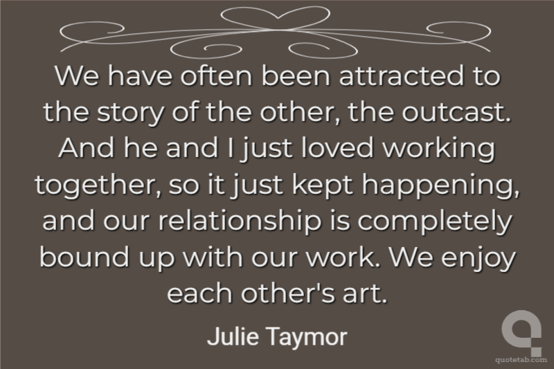 We have often been attracted to the story of the other, the outcast. And he and I just loved working together, so it just kept happening, and our relationship is completely bound up with our work. We enjoy each other's art.