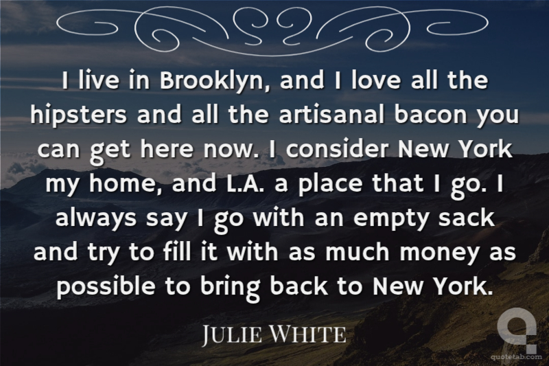 I live in Brooklyn, and I love all the hipsters and all the artisanal bacon you can get here now. I consider New York my home, and L.A. a place that I go. I always say I go with an empty sack and try to fill it with as much money as possible to bring back to New York.