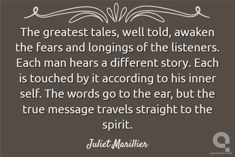 The greatest tales, well told, awaken the fears and longings of the listeners. Each man hears a different story. Each is touched by it according to his inner self. The words go to the ear, but the true message travels straight to the spirit.
