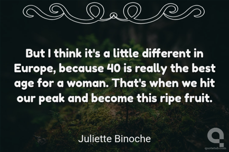 But I think it's a little different in Europe, because 40 is really the best age for a woman. That's when we hit our peak and become this ripe fruit.