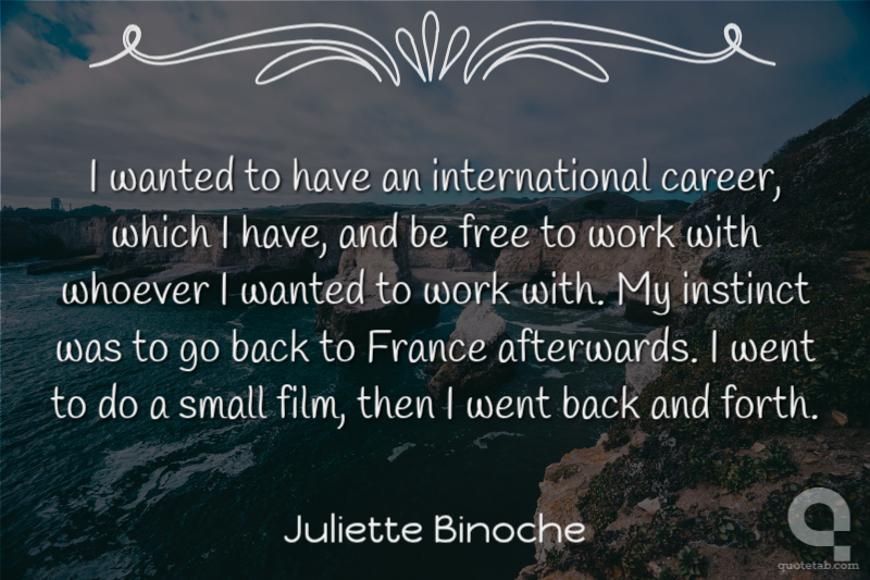 I wanted to have an international career, which I have, and be free to work with whoever I wanted to work with. My instinct was to go back to France afterwards. I went to do a small film, then I went back and forth.