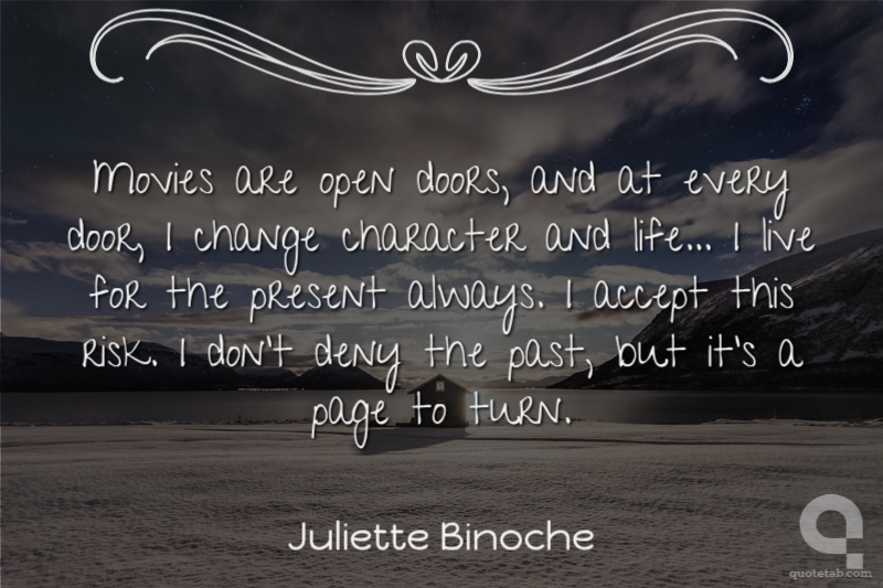 Movies are open doors, and at every door, I change character and life... I live for the present always. I accept this risk. I don't deny the past, but it's a page to turn.